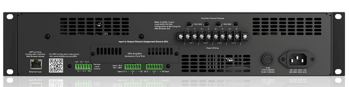 Ein integrierter DSP mit Funktionen wie Pegelsteuerung, EQs, Limiter, High und Low Pass Filter, Delays und Mixer je Kanal erlaubt eine optimale Anpassung. Dank integriertem Webbrowser sind die Fernsteuerung der DSP-Funktionen und Pegel sowie die Überwachung der Ausgangspegel und des Status jedes DPA-Verstärkers im Netzwerk möglich. Die Einstellungen erfolgen über Computer, Tablet oder Smartphone. Alle Einstellungen können mit Passwort geschützt werden.
