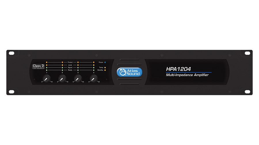 The AtlasIED High Power Amplifier “HPA” Series is designed for use in both commercial 70V/100V distributed systems and professional applications that require amplifiers to handle multiple impedance loads. The HPA is compact and lightweight in comparison to other models delivering similar power levels. The HPA Series features Generation II Class D Output topology that provides great efficiency with the sound quality of a Class AB amplifier. The power supply is a switch mode, global auto sensing design that maintains a stable output during fluctuating power conditions. The power supply and output stage collectively are designed to deliver exceptional dynamic high output voltage and current to virtually any speaker load.