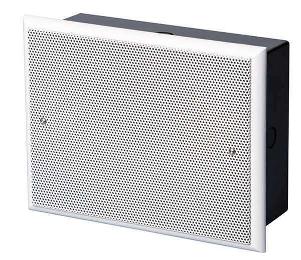 Rechteckiger Wandunterputz-Lautsprecher, Zertifizierung gemäss EN 54-24, mit hohem Wirkungsgrad und robuster Stahlblech-Abdeckung mit guten akustischen Eigenschaften aufgrund des Leistungsstarken 165 mm Breitband-Chassis.
